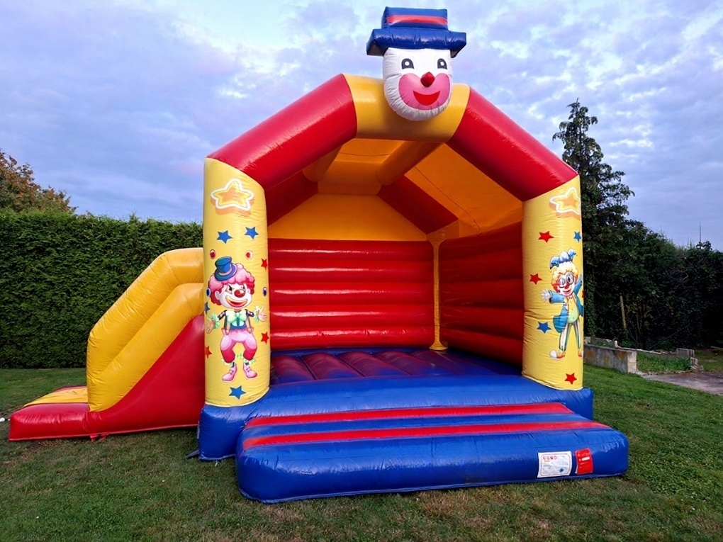 Öppen hoppborg där barnen kan hoppa runt fritt och ni har uppsyn över allt som händer. Denna hoppborg har även en mindre rutschkana på sidan som gör det roliga roligare. Detta är en av mina populäraste hoppborgar av de i mellanprisklassen